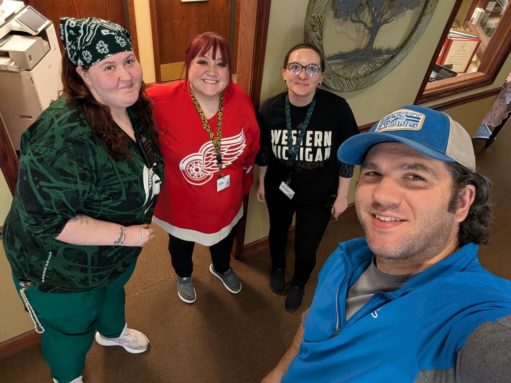 Today our team showed up and showed out for Sports Day! Our staff had so much fun dressing up in their favorite sports teams, repping jerseys, colors, and all the team pride. The energy was contagious as residents and staff bonded over favorite teams, shared sports memories, and enjoyed all the excitement the day brought. It’s moments like these that bring our Bickford family even closer together! #BickfordofBattleCreek #BickfordSpiritWeek #SportsDay #TeamSpirit #BickfordFamily #SeniorLivingFun #GameDayVibes