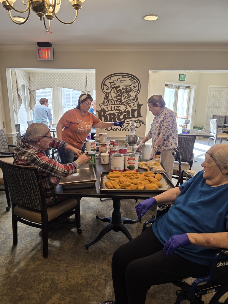 Bickford of Bexley Assisted Living and Memory Care's Family & Friends Thanksgiving Part 1 - Food Preparation: After donning hair nets and gloves and forming turkey stuffing, casserole fixing, and pie making stations, we all set to work! And wow did we, and in record time! 3 stuffed turkeys, multiple pans of sweet potato and green bean casseroles, and 10 pies! But it was TEAMWORK that did it all! Have a look at all these workers bees! Residents, family, and staff all came together to make our first Thanksgiving meal, and I believe we started a tradition! Stay tuned for Part 2: Dining Together. #Assistedliving #Montessoriinspiredlifestyle #Seniorcaresupport #Momentsthatmatter
