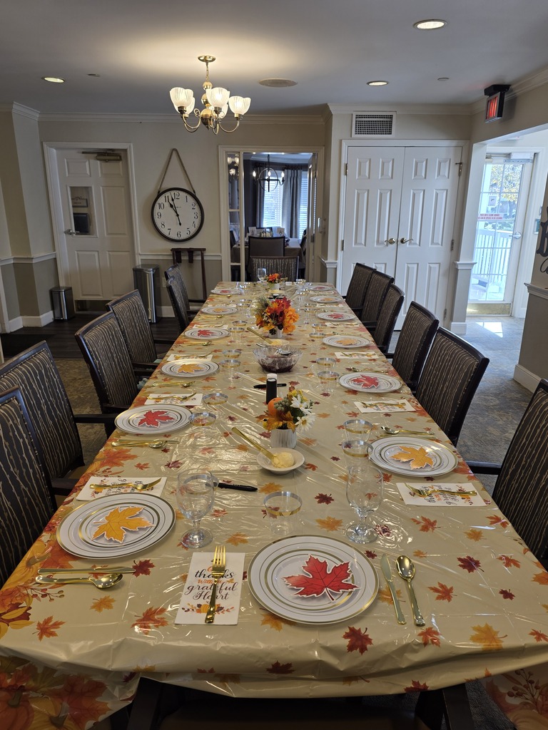 Bickford of Bexley Assisted Living and Memory Care's Friends and Family Thanksgiving, Part 2-Dining Together: Tables were moved and set, everyone gathered, heads bowed to thank the One above for food donations, hands that prepared it, and priceless time spent together. We all dug into our delicious homemade Thanksgiving dinner, that only led to delightfully full bellies and beautifully contented smiles. Thank you to everyone who donated food or helped with preparation, serving, or clean-up! All your love and support brought this event together seamlessly. GOD BLESS US, EVERYONE!