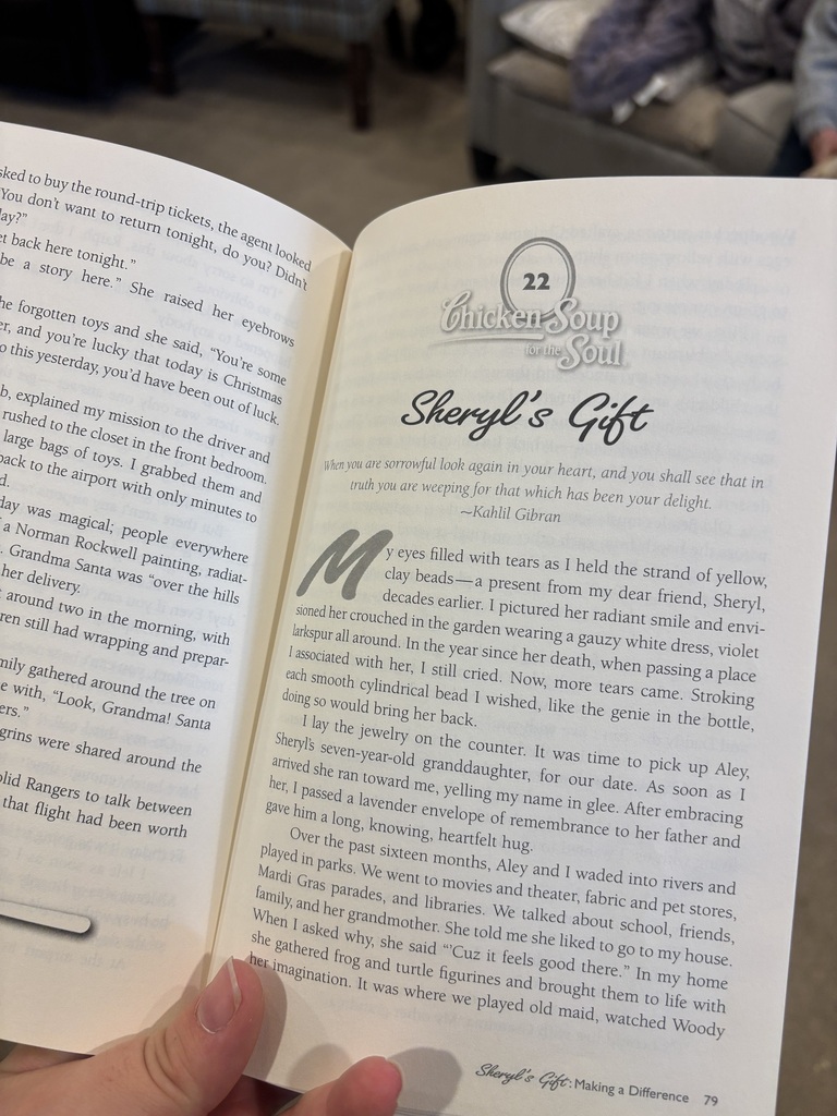 The Joy of Reading Chicken Soup for the Soul There’s something special about cozying up with a good story—and Chicken Soup for the Soul offers just that. Each story inspires, comforts, and uplifts, reminding us of the kindness, humor, and resilience in everyday life. For our residents, hearing these stories is more than entertainment—it sparks conversation, brings smiles, and connects us through shared experiences. A simple page can brighten a day, warm a heart, and remind us that we are never alone in life’s journey.