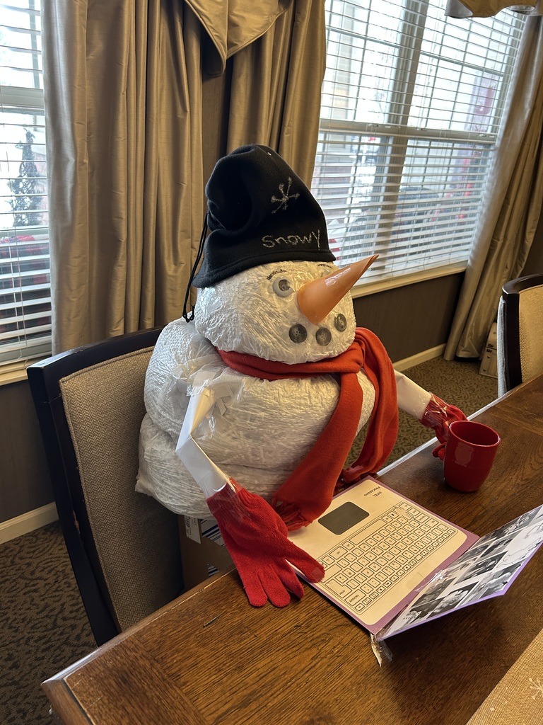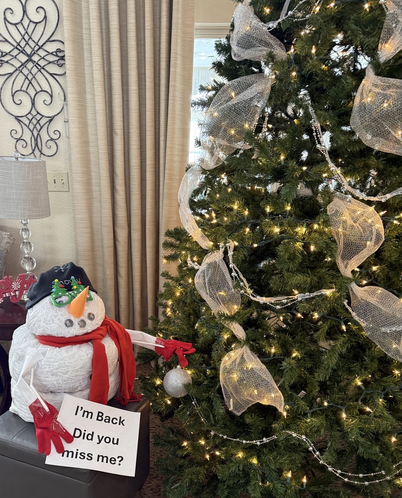 He’s back! Did you miss him? Snowy is back for another season of mischief and fun. He wanted to be good on his first day, so he is helping decorate the tree. #bickfordofclinton