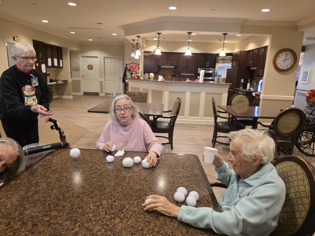 Today one of our residents took the lead and kicked off a friendly indoor snowball fight for assisted living and memory care. Laughter filled the room, puzzles kept minds engaged, and a little pampering in the beauty shop made everyone feel extra special. Days like this remind us that joy, purpose, and connection matter at every stage of life.