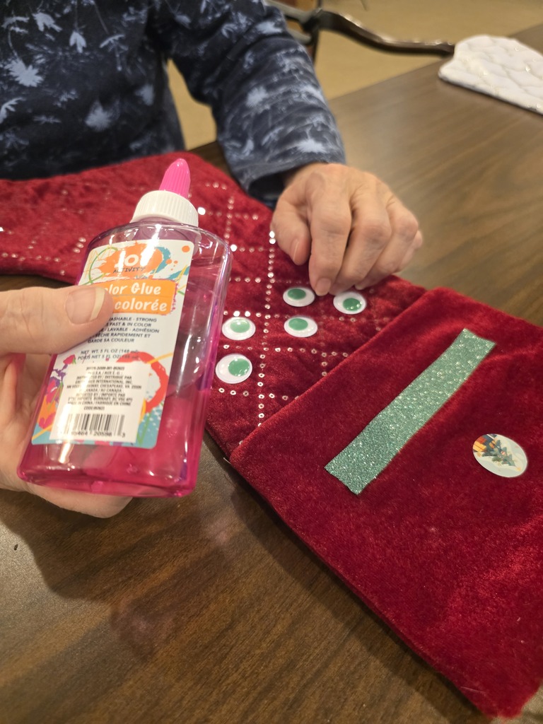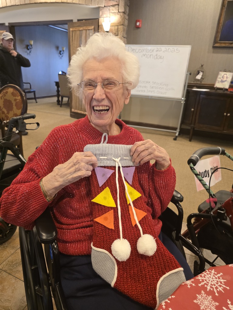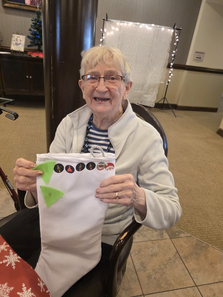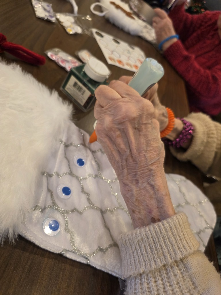 Skippy popped in for a visit during crafting here at Bickford of Greenwood Assisted Living and Montessori Memory Care! Crafting christmas stockings with one another! #Card #Montessori #Memorycare #HigherPath