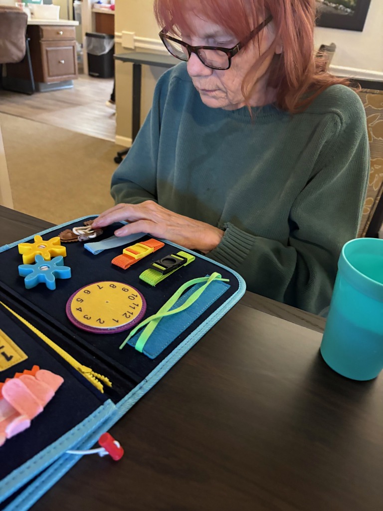 Little Things That Keep Hands & Hearts Busy Sometimes, it’s the simplest activities that make the biggest difference. Busy boards — filled with buttons, zippers, latches, textures, and familiar objects — offer a gentle, engaging way to keep hands moving and minds active. There’s something comforting about having a task to focus on. Whether it’s snapping a buckle, sliding a zipper, or exploring different textures, these small movements can bring a sense of purpose, calm, and even a bit of fun. They also tap into familiar, everyday motions that feel natural and reassuring. Beyond keeping busy, these moments often spark curiosity, conversation, and even a few smiles. It’s amazing how something so simple can create connection and a sense of accomplishment. At the end of the day, it’s not about doing something big — it’s about creating meaningful moments, one small interaction at a time.