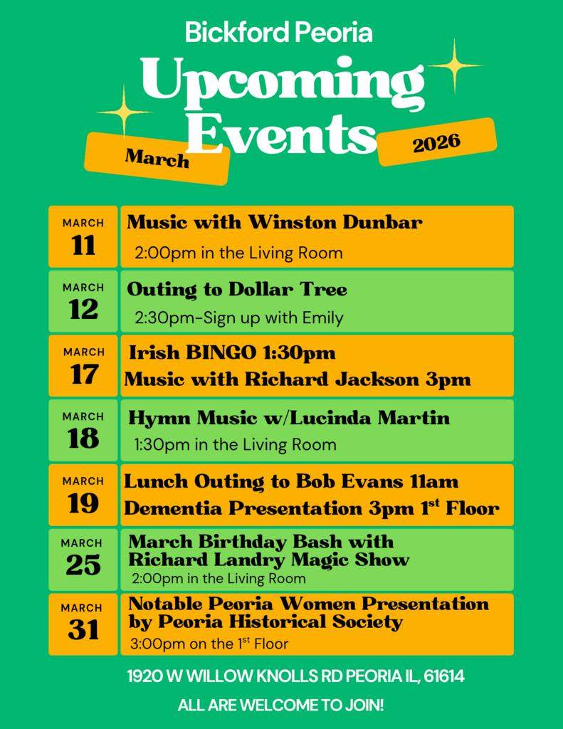 Does your loved one need a little extra care? We understand how emotional this decision can be. You want a place where they will feel safe, cared for, and truly at home. At Bickford of Peoria, that's exactly what we provide. We offer spacious studio, 1-bedroom and 2-bedroom apartments. Each apartment can be decorated and personalized so your loved one can create a warm, familiar home that reflects who they are. Delicious, made from scratch meals, home cooked every day! A community that supports health, happiness and purpose socialization is essential for well-being. Through daily activities, music, events, and shared passions, our residents build relationships, stay engaged, and feel a renewed sense of purpose. Everyone is encouraged to bring their talents and joys to share with others. Our team provides personalized support with dignity, respect, and genuine warmth. From daily assistance to medication management, we are here for your loved one like family. Give Jori a call to schedule a tour at 309-247-7035. Bickford of Peoria - where every new resident becomes part of something warm, welcoming, and truly special. #BickfordofPeoria