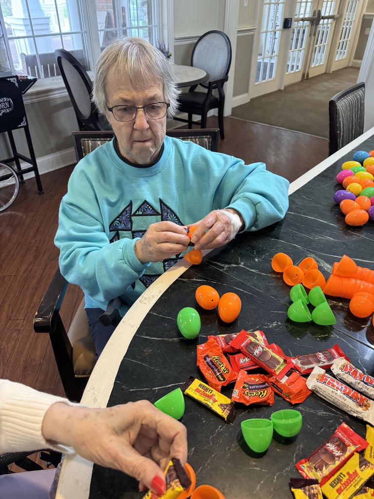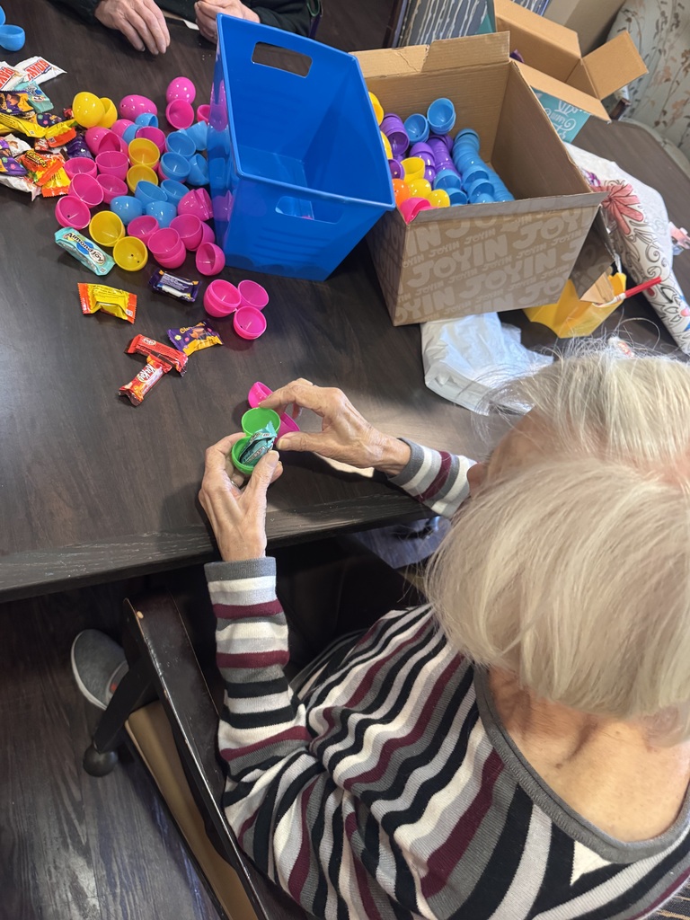 This weekend we’re excited to host our Easter Social with families, complete with an egg hunt for everyone to enjoy. To help lighten the load for our Montessori Coordinator, the ladies from AL and Mary B jumped right in to help fill Easter eggs with candy. For many, this simple activity brought back cherished memories of celebrating Easter with their own families. They shared stories about their traditions, the joy of past holidays, and the excitement they felt preparing for them. Now, they’re eagerly counting down the days until Saturday. #BickfordOfRockyRiver #Montessori #Activites #Memories
