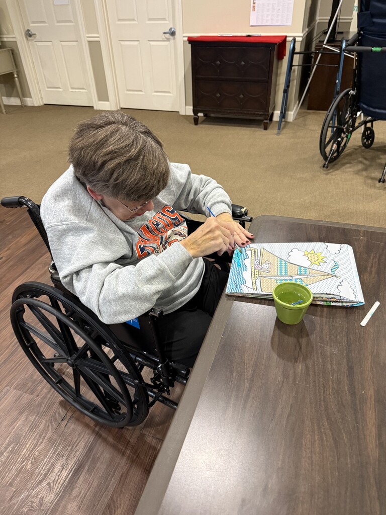 In the photos below, you’ll see her fully immersed in painting, carefully working through a puzzle, and enjoying a friendly game. These moments may seem simple, but they represent so much more. Creative expression through art allows her to relax, focus, and tap into a sense of accomplishment. Puzzles help strengthen problem-solving skills and encourage concentration, while games provide opportunities for connection, laughter, and confidence.