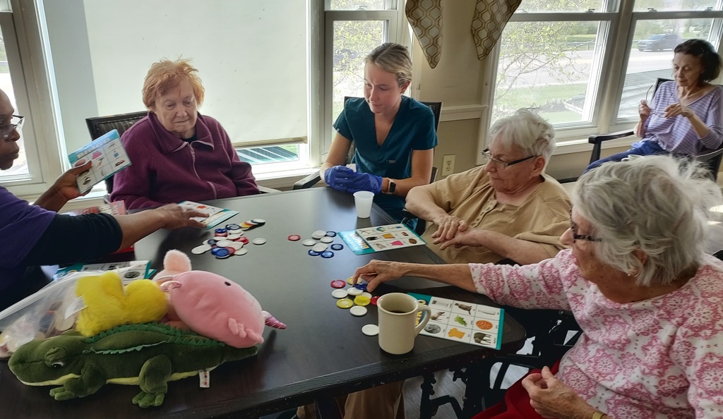 The ladies on Mary B’s at Bickford of Upper Arlington Assisted Living & Memory Care are having a wonderful time enjoying a lively game of picture bingo today! Smiles, laughter, and friendly competition filled the room—what a fun way to spend the day together.#prizebingo
