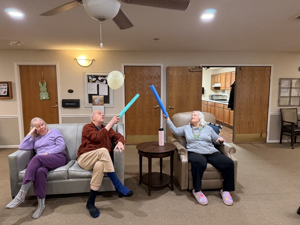 Who says exercise can't be fun? Balloon volleyball is a fun twist on exercise, gentle on the body, big on movement, laughter, and teamwork! It gets everyone stretching, reaching, and smiling while staying active in a safe and engaging way.