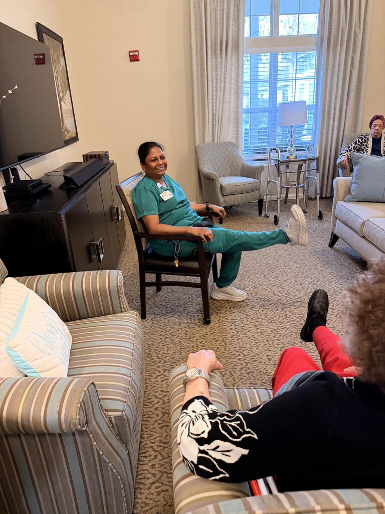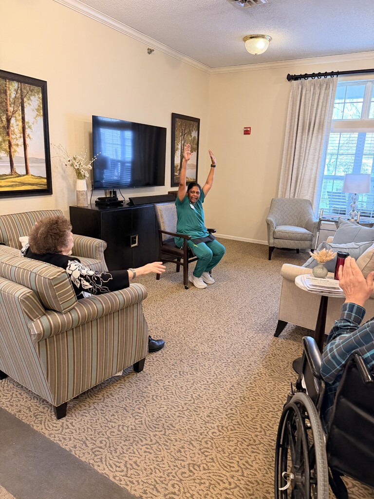This morning we had a special guest lead exercise! BFM Mary led our residents through her exercise routine and they loved it!