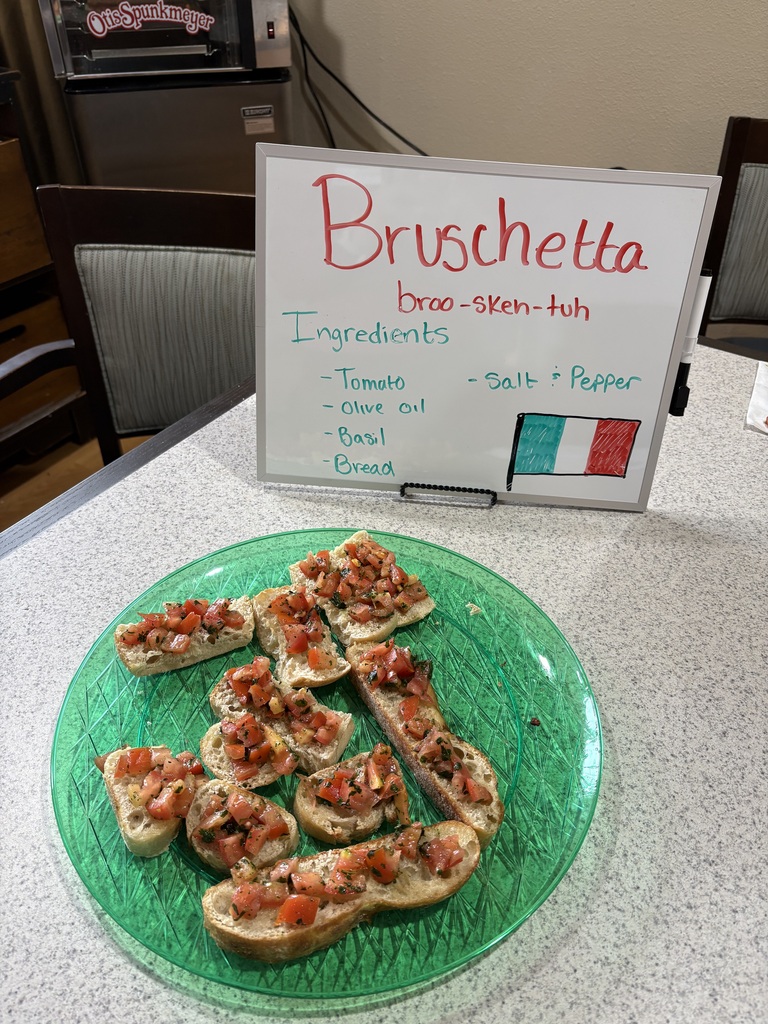 Had such a great time walking through a simple, flavor-packed bruschetta during today’s cooking demo—crisp toasted bread, juicy tomatoes, fragrant basil, a drizzle of olive oil… and just the right touch of garlic. Our residents absolutely loved it and were excited to try something new—there’s nothing better than seeing everyone engaged, tasting, and having fun together. Proof that the best dishes don’t need to be complicated—just fresh ingredients and a little love. Who’s making this at home tonight?