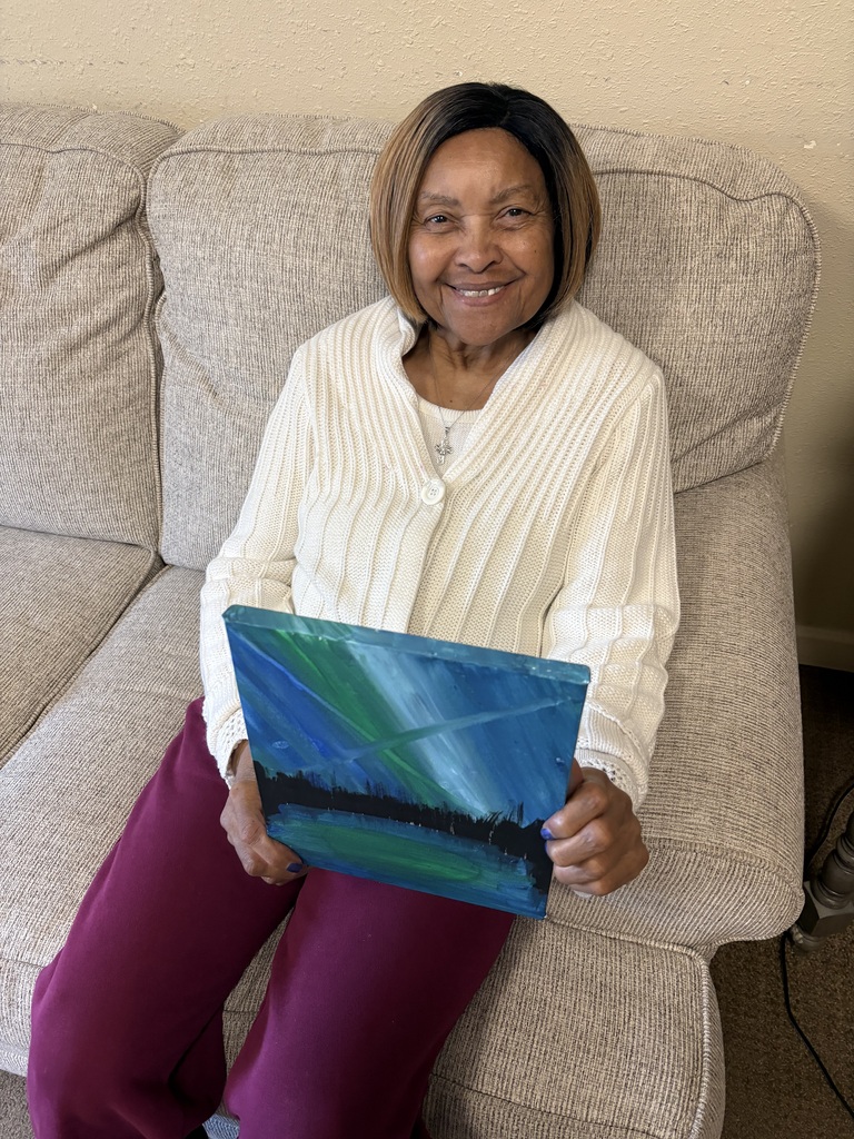 One of our wonderful residents recently joined our painting class with a clear vision in mind — to capture the beauty of the northern lights