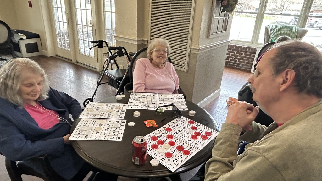 Today our assisted living residents enjoyed our weekly Candy Bingo, and the fun didn’t stop at just winning treats. One of our residents loved it so much that he used his bingo chips for eyes and had everyone laughing! It’s the little moments of joy, laughter, and creativity that make our community so special. What a fun afternoon we had together! ❤️ #AssistedLiving#SeniorCare