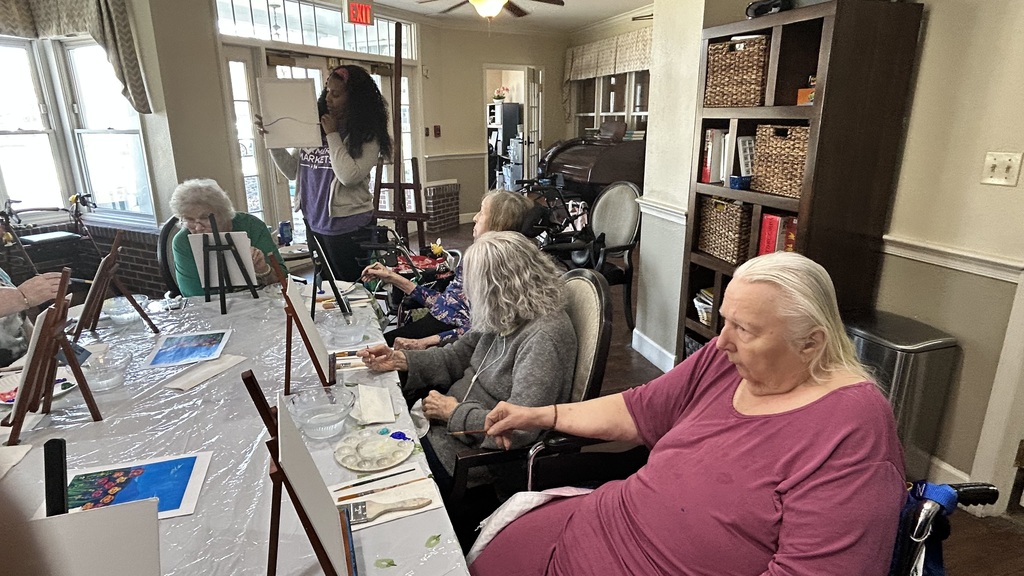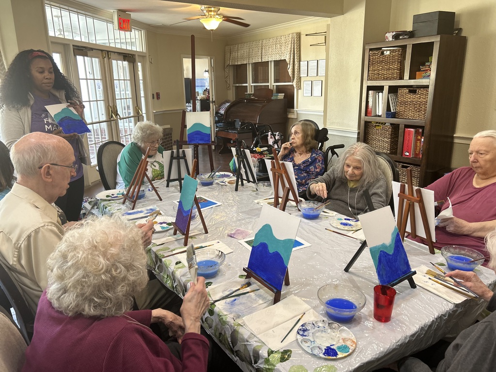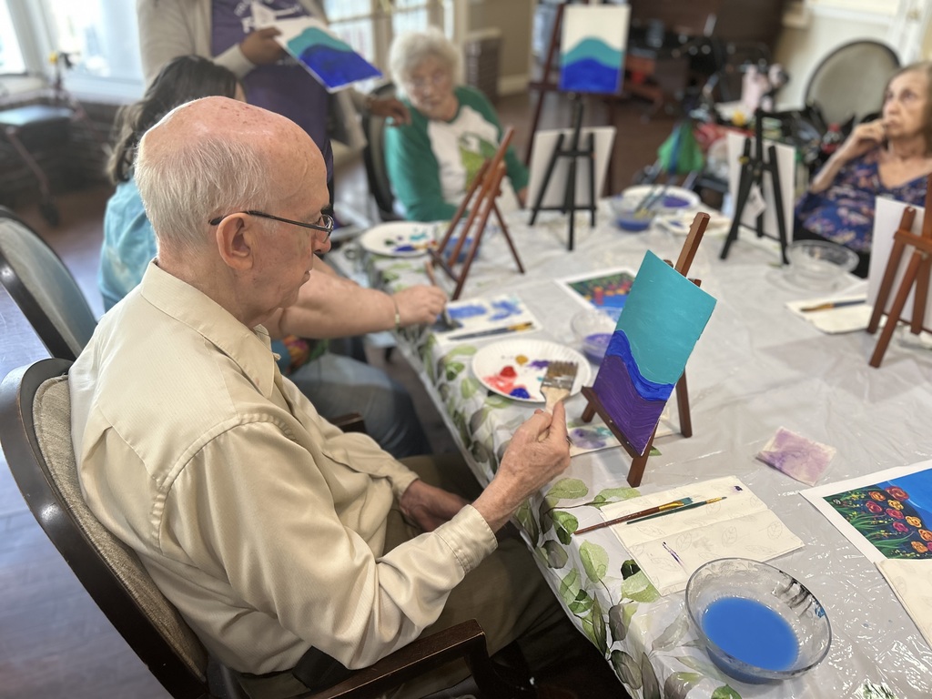 Our assisted living residents had a wonderful time painting beautiful flower canvases. It was so special to see everyone enjoying the freedom to express their creativity and create their own unique works of art. Each painting turned out as beautiful and unique as the artist behind it! A big thank you to Simone Robinson for leading such a fun and engaging paint class. Our residents had an amazing time, and we truly appreciate you sharing your talent with us. #AssistedLiving#MomentsThatMatter