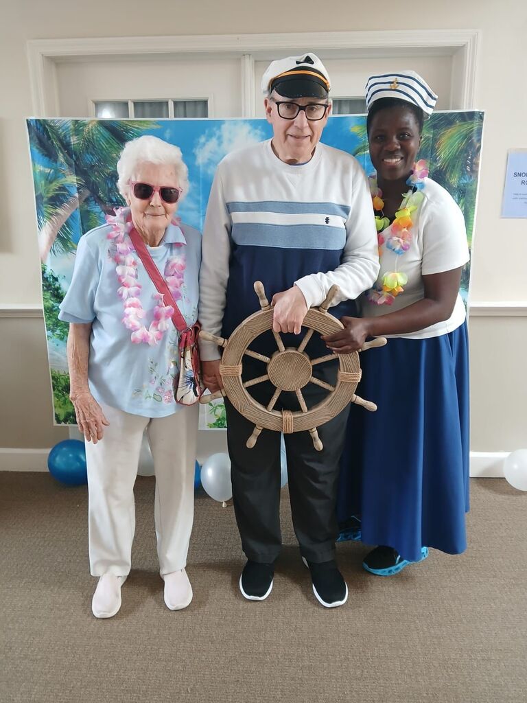 At Bickford of Worthington Memory Care, our annual themed day was a true adventure this year as we set sail on a "Cruise the Open Seas" journey around the Caribbean! Residents and staff eagerly came aboard, ready to embark on a day full of fun, laughter, and tropical vibes. From the moment everyone boarded the ship, the excitement was in the air.
